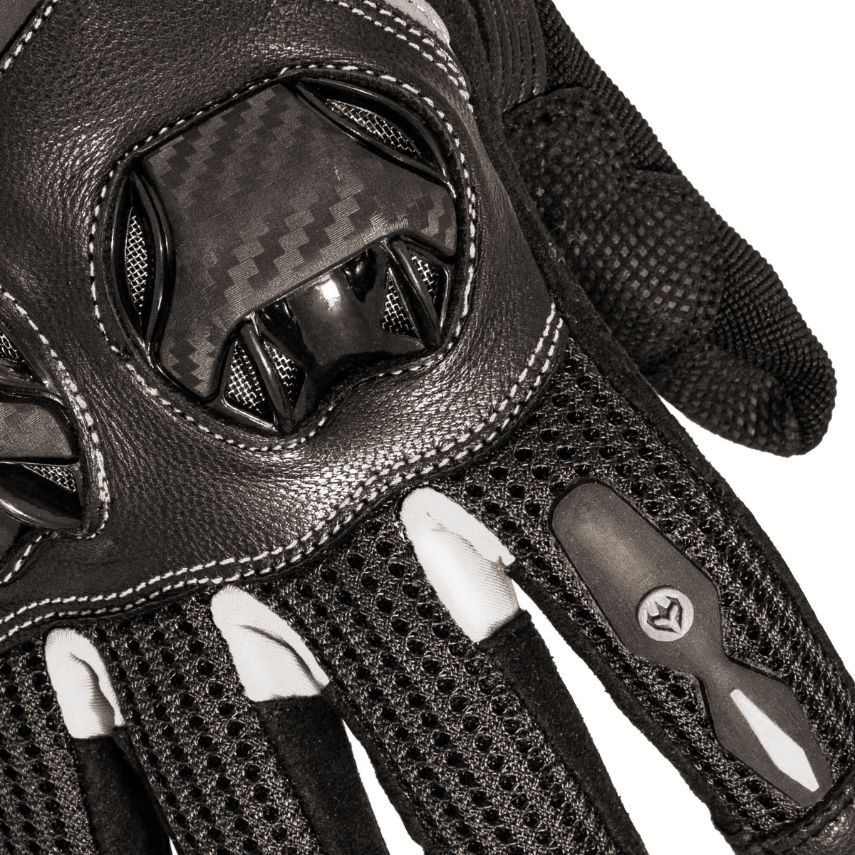 Armure Astrid V2 Lady Gloves Black / White. Short, ventilated gloves with a women’s-specific fit, designed to offer an optimal combination of comfort, protection, and breathability. Made of polyester mesh and goatskin, they feature TPU knuckle protection and strategic details for improved grip and safety. They also allow for touchscreen operation without having to remove the gloves.