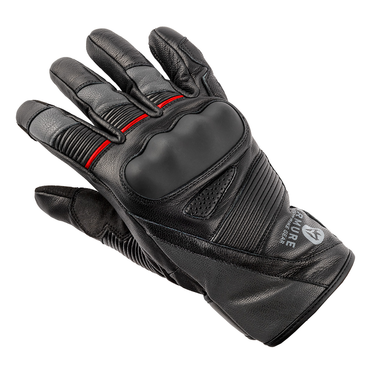 Armure Faust Short Waterproof Gloves Black/Grey. Short, touring-style gloves made of goatskin with a waterproof membrane. With built-in TPU protections on the knuckles and strategically placed reinforcements and padding. They allow you to use a touch screen device without having to remove your gloves.