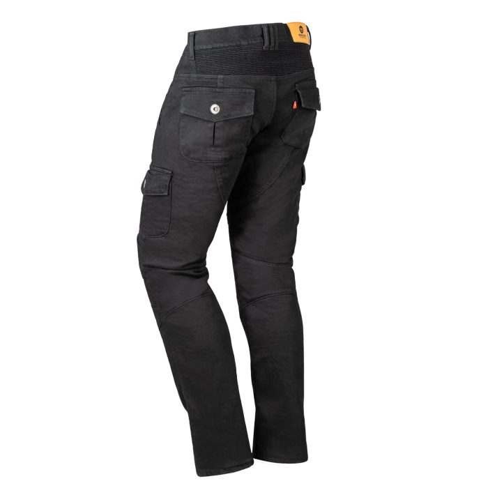 Armure Rayner Pants Black. Casual-style cargo pants made of cotton and aramid fiber reinforcements on the knees and buttocks. Designed with the aim of providing an excellent relationship between durability, resistance and comfort. It also has approved level 2 knee protectors that can be inserted both outside and inside the pants.
