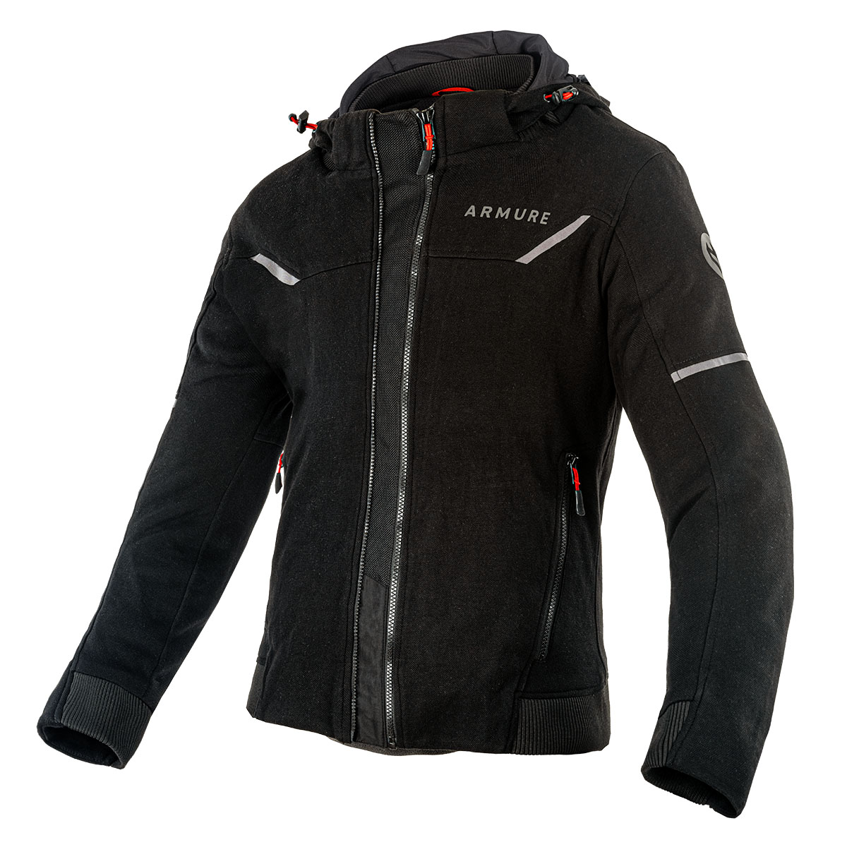 Armure Radley Jacket Black. An urban jacket with a casual style and certified protection, designed for riders looking for a safe, comfortable garment with a streetwear aesthetic. It combines durable fabrics with effective ventilation and CE Level 2 protection, making it perfect for both daily riding and comfortable off-road use. Its adjustable hood and twill-style outer fabric add a modern and discreet touch.