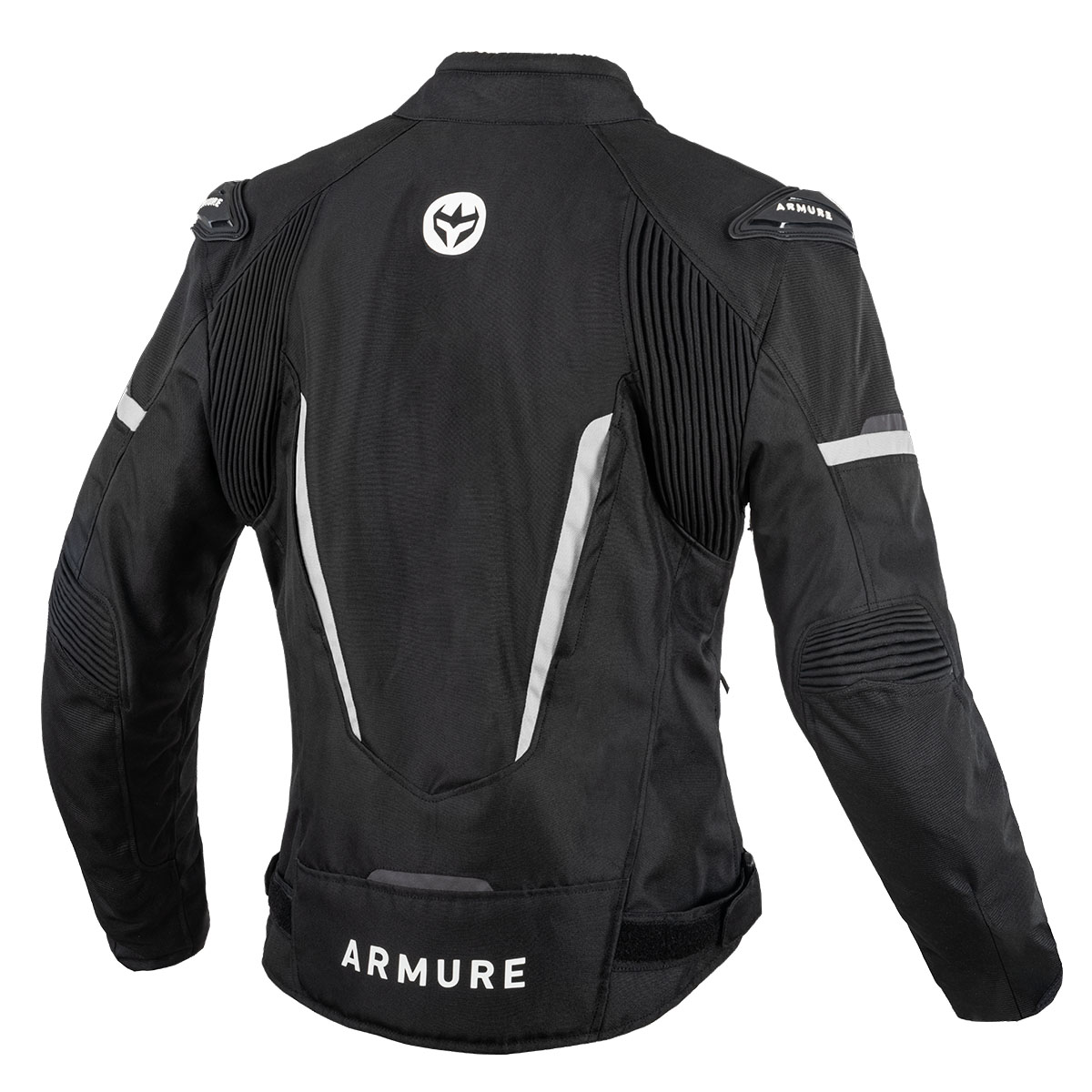 Chaqueta Armure Astrid Waterproof AA Lady Negra / Blanca. Chaqueta de estilo sport con tallaje específico para mujer, diseñada para combinar protección avanzada, confort térmico y un diseño moderno. Gracias a su construcción en poliéster 600DN y tejido Ripstop, ofrece una gran resistencia a la abrasión (Homologada en nivel AA), mientras que el forro térmico desmontable y el sistema de ventilación por cremalleras permiten adaptarse a cualquier condición meteorológica.