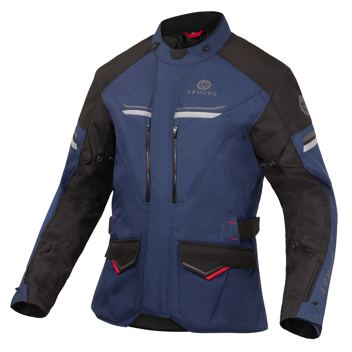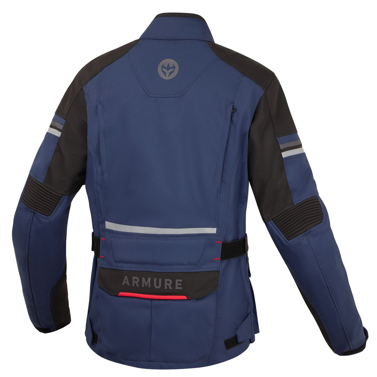 Chaqueta Armure Mack V2 Waterproof Lady Azul Oscuro. Chaqueta touring versátil y de alta calidad con tallaje específico para mujer, ideal para adaptarse a diversas condiciones climáticas. Confeccionada con materiales de alta resistencia, esta chaqueta incorpora membrana impermeable, forro térmico desmontable y múltiples entradas de aire para una ventilación óptima. Sus protecciones certificadas CE aseguran un alto nivel de seguridad en hombros y codos.