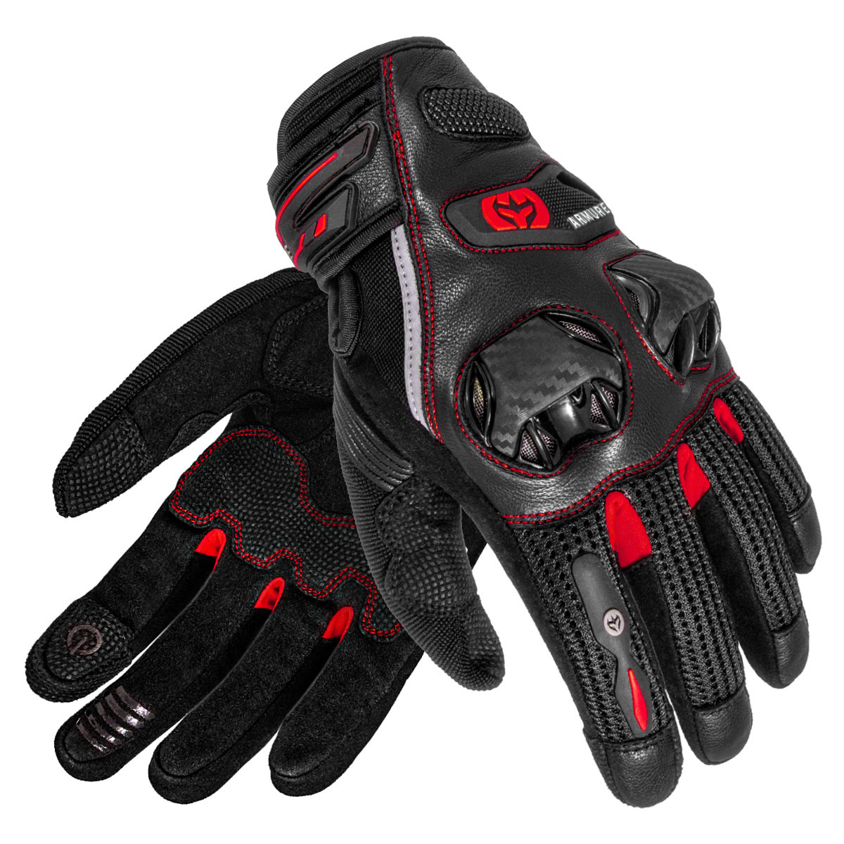 Guantes Armure Astrid V2 Vented Lady Negro / Rojo. Diseñados para los motoristas que buscan estilo, frescura y seguridad en los días más calurosos. Los Armure Astrid V2 son guantes cortos y ligeros con ajuste específico para mujer que combinan ventilación de alto nivel con materiales premium y una protección fiable. Ideales para uso diario o escapadas veraniegas.