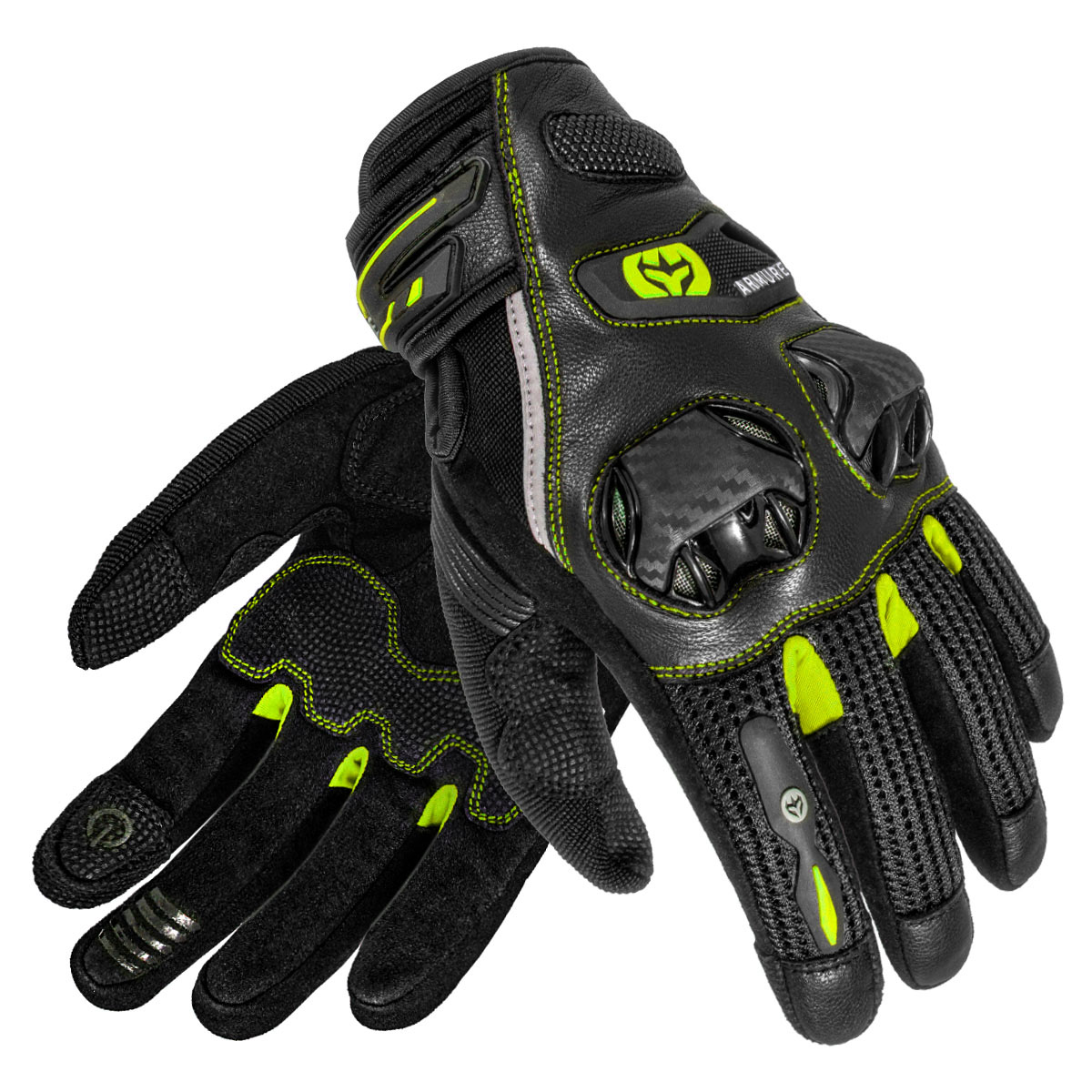 Guantes Armure Astrid V2 Vented Lady Negro / Amarillo Fluor. Diseñados para los motoristas que buscan estilo, frescura y seguridad en los días más calurosos. Los Armure Astrid V2 son guantes cortos y ligeros con ajuste específico para mujer que combinan ventilación de alto nivel con materiales premium y una protección fiable. Ideales para uso diario o escapadas veraniegas.