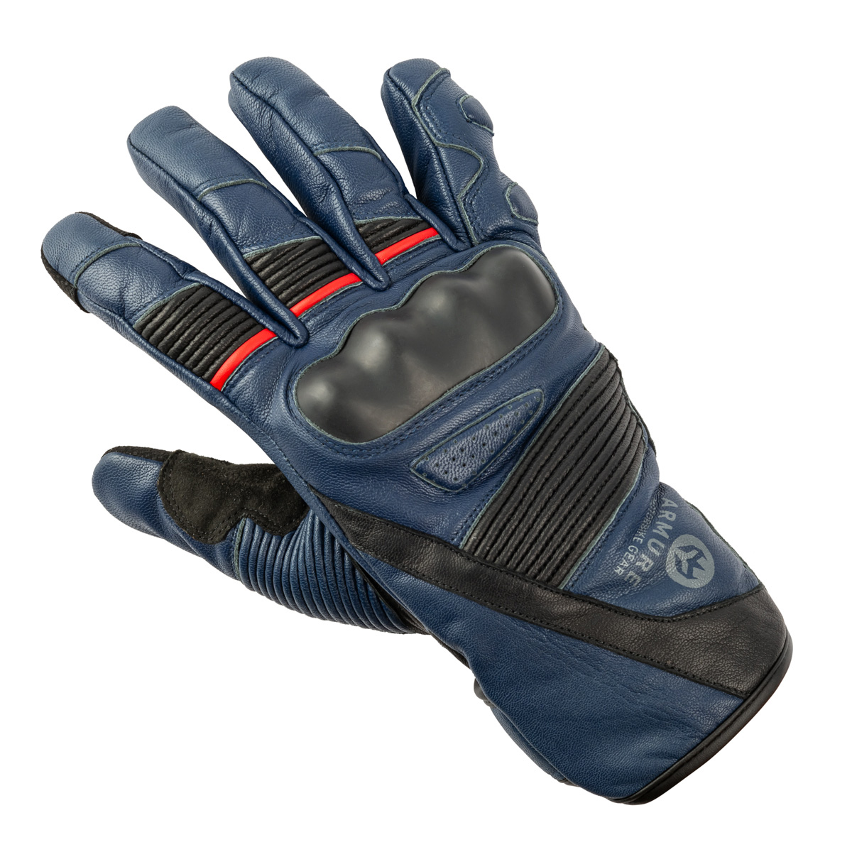 Guantes Armure Faust Short Waterproof Navy. Guantes cortos de estilo touring confeccionados en piel de cabra con membrana impermeable. Incorpora protecciones integradas de TPU en los nudillos y refuerzos y acolchados estratégicamente ubicados. Permiten utilizar un dispositivo de pantalla táctil sin tener que quitarse los guantes.