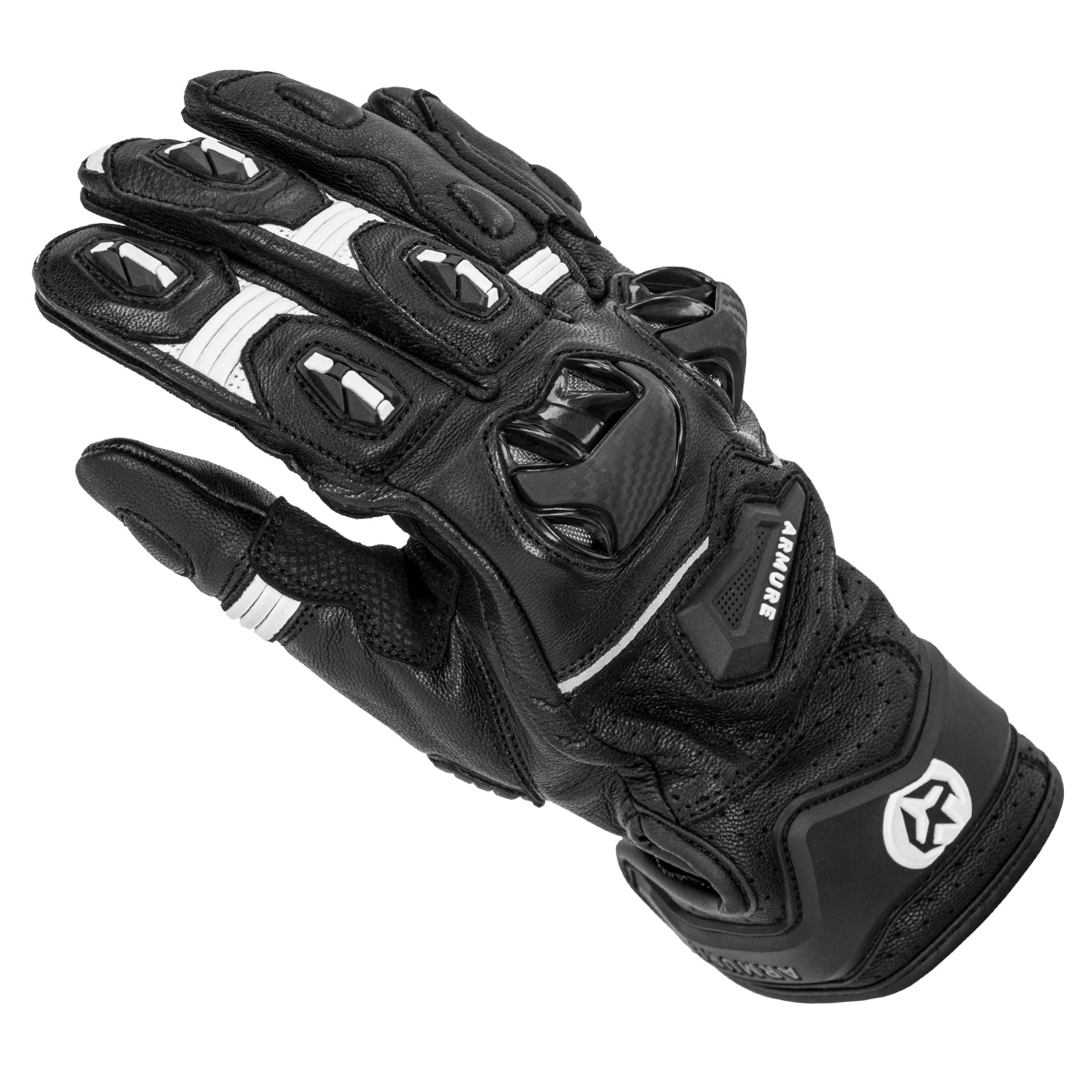 Guantes Armure Stace V2 Negros / Blancos. Guantes cortos de estilo agresivo confeccionados en piel de cabra. Incorpora protecciones TPU en los nudillos y puente entre el 4º y 5º dedo para evitar la torsión y separación de los de dedos. Permiten utilizar un dispositivo de pantalla táctil sin tener que quitarse los guantes.